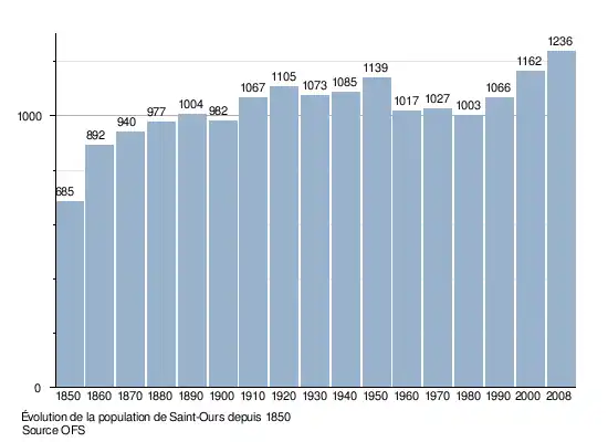 Selon l'Office fédéral de la statistique, Saint-Ours compte 1 441 habitants en 2023[1]. Sa densité de population atteint 91 hab./km2.