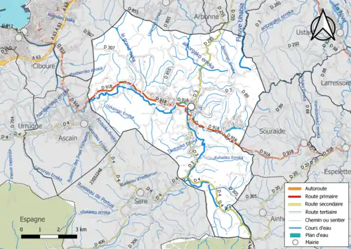 Les terres de la commune sont arrosées[12] par trois fleuves, la Nivelle, le ruisseau Basarun et l'Uhabia.