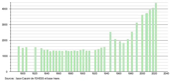 - ↑ Fiches Insee - Populations de référence de la commune pour les années 2006, 2007, 2008, 2009, 2010, 2011, 2012, 2013, 2014, 2015, 2016, 2017, 2018, 2019, 2020, 2021 et 2022.