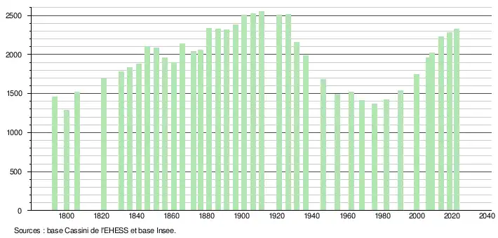- ↑ Fiches Insee - Populations de référence de la commune pour les années 2006, 2007, 2008, 2009, 2010, 2011, 2012, 2013, 2014, 2015, 2016, 2017, 2018, 2019, 2020, 2021 et 2022.