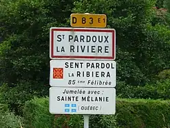 - ↑ Le nom occitan des communes du Périgord - Sent Pardol la Ribiera sur le site du Conseil général de la Dordogne, consulté le 22 septembre 2021.