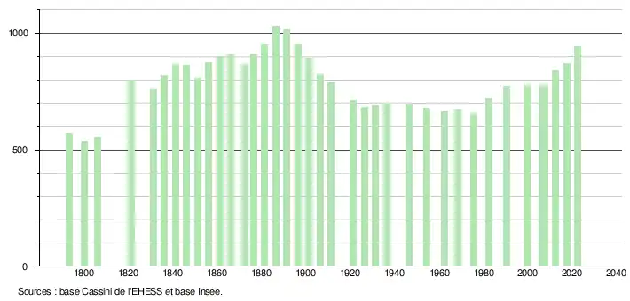- ↑ Population municipale de référence en vigueur au 1er janvier 2025, millésimée 2022, définie dans les limites territoriales en vigueur au 1er janvier 2024, date de référence statistique : 1er janvier 2022.