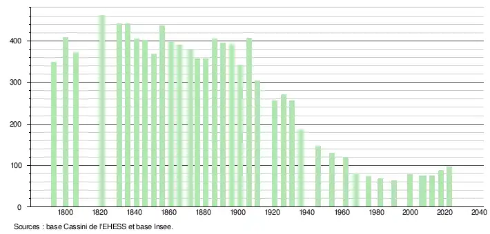 - ↑ Fiches Insee - Populations de référence de la commune pour les années 2006, 2007, 2008, 2009, 2010, 2011, 2012, 2013, 2014, 2015, 2016, 2017, 2018, 2019, 2020, 2021 et 2022.