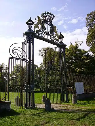 - Le jardin a été dessiné par Le Nôtre, avec une grille en fer forgé, sept statues en pierre ou marbre, un pont de pierre, les douves et sauts-de-loup, les sept avenues partant du rond-point de « Zéphir et Flore » et l'avenue latérale conduisant à la « tonnelle du Roi Jacques » ;