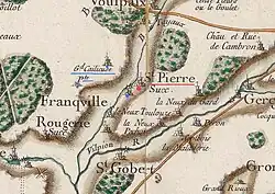 La carte de Cassini montre qu'au XVIIIe siècle, Saint-Pierre-lès-Franqueville est une paroisse située sur le Ru de Laigny qui se jette dans la Vilpion.