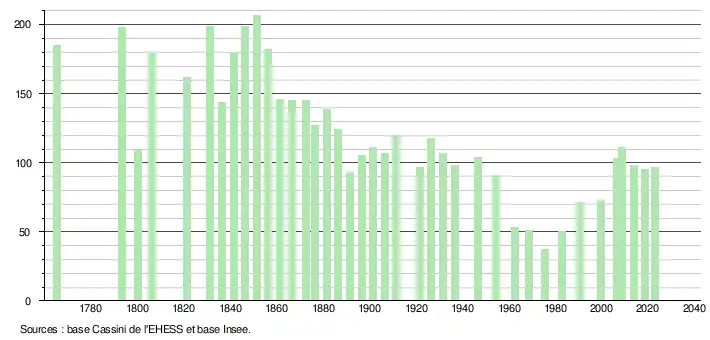 - ↑ Christiane Vidal, « Chronologie et rythmes du dépeuplement dans le département des Alpes-de-Haute-Provence depuis le début du XIXe siècle. », Provence historique, tome 21, no 85, 1971, p. 289.