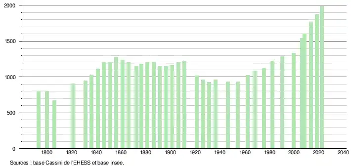 - ↑ Fiches Insee - Populations de référence de la commune pour les années 2006, 2007, 2008, 2009, 2010, 2011, 2012, 2013, 2014, 2015, 2016, 2017, 2018, 2019, 2020, 2021 et 2022.