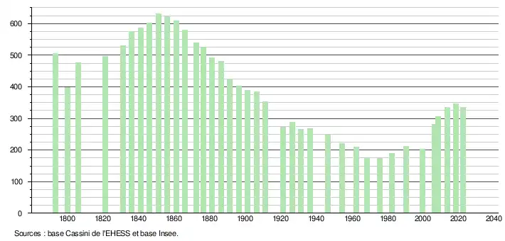 - ↑ Fiches Insee - Populations de référence de la commune pour les années 2006, 2007, 2008, 2009, 2010, 2011, 2012, 2013, 2014, 2015, 2016, 2017, 2018, 2019, 2020, 2021 et 2022.