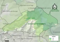 Carte de la ZNIEFF de type 2 sur la commune.