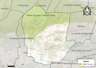- ↑ « ZNIEFF le « plateau de Lussan et Massifs Boisés » - fiche descriptive », sur le site de l'inventaire national du patrimoine naturel (consulté le ).