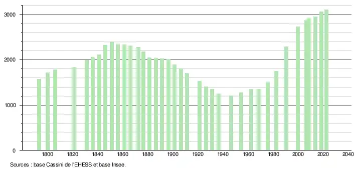- ↑ Fiches Insee - Populations de référence de la commune pour les années 2006, 2007, 2008, 2009, 2010, 2011, 2012, 2013, 2014, 2015, 2016, 2017, 2018, 2019, 2020, 2021 et 2022.