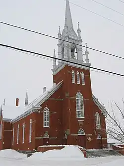 L'église paroissiale a été construite en 1910 selon les plans de l'architecte Thomas Raymond de Québec par l'entrepreneur Zénon Ouellet du Bic. Elle est de style néo-gothique. Son revêtement extérieur est de brique rouge avec une toiture en tôle à la canadienne. La voûte intérieure est en forme d'arc brisé, propre au style gothique. La forme intérieure est une croix latine. Sa valeur patrimoniale est évaluée à moyenne (D) par la Fondation du patrimoine religieux du Québec. Sur sa façade, on aperçoit l'inscription « D.O.M. 1910 ». L'expression D.O.M. signifie « Deo optimo maximo », signifiant : « Au Dieu très bon et très grand » en latin et se retrouve sur plusieurs façades d'églises. Elle fut inaugurée le . L'église comprend un orgue de facture Casavant Frères datant de 1926.