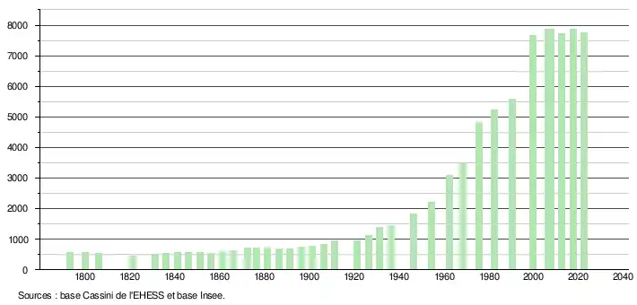 - ↑ Fiches Insee - Populations de référence de la commune pour les années 2006, 2007, 2008, 2009, 2010, 2011, 2012, 2013, 2014, 2015, 2016, 2017, 2018, 2019, 2020, 2021 et 2022.