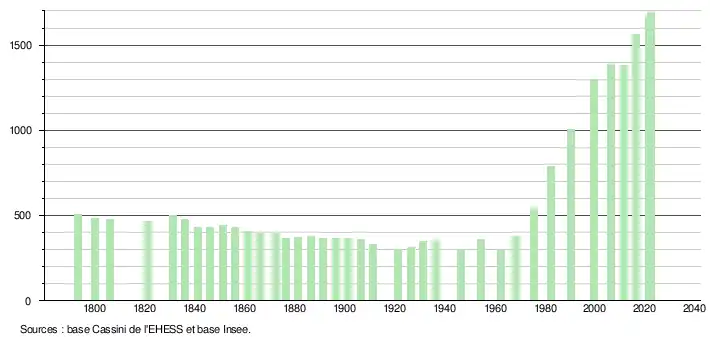 - ↑ Fiches Insee - Populations de référence de la commune pour les années 2006, 2007, 2008, 2009, 2010, 2011, 2012, 2013, 2014, 2015, 2016, 2017, 2018, 2019, 2020, 2021 et 2022.