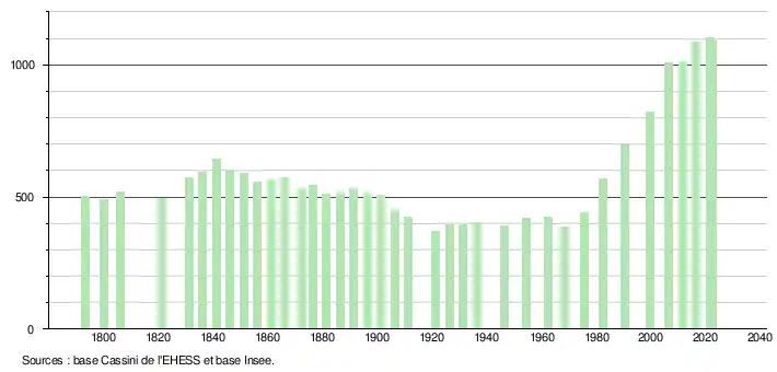 De 1962 à 2006, la population de la commune a été multipliée par 2,4, passant de 423 habitants à 1 006 habitants. En 2009, on y compte 1 043 habitants.