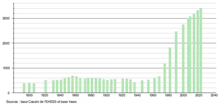 - ↑ Fiches Insee - Populations de référence de la commune pour les années 2006, 2007, 2008, 2009, 2010, 2011, 2012, 2013, 2014, 2015, 2016, 2017, 2018, 2019, 2020, 2021 et 2022.