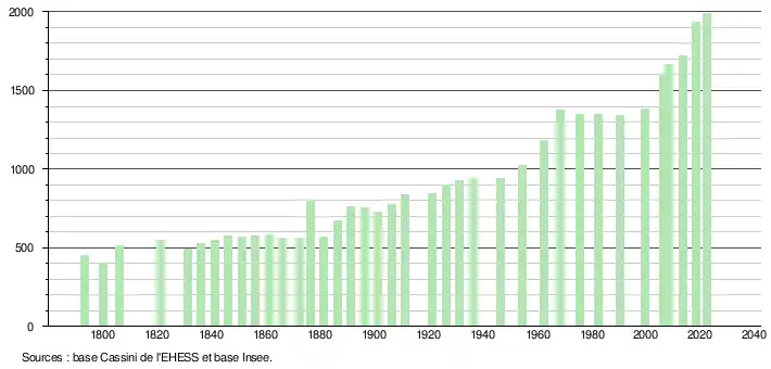 - ↑ Fiches Insee - Populations de référence de la commune pour les années 2006, 2007, 2008, 2009, 2010, 2011, 2012, 2013, 2014, 2015, 2016, 2017, 2018, 2019, 2020, 2021 et 2022.