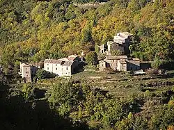 Le peuplement de la commune n'a toutefois pas progressé autour de ce castrum, poste essentiellement militaire destiné à défendre le col où il fut édifié (chef-lieu actuel), mais en des lieux isolés (mas et hameaux actuels) où les nouveaux venus recevaient des seigneurs, en franchise le plus souvent pour les y attirer, une parcelle à bâtir et quelques champs à défricher, le rôle de l’église se bornant alors, à concéder le moment venu une église paroissiale[21].