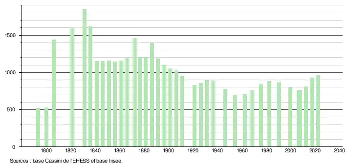 - ↑ Fiches Insee - Populations de référence de la commune pour les années 2006, 2007, 2008, 2009, 2010, 2011, 2012, 2013, 2014, 2015, 2016, 2017, 2018, 2019, 2020, 2021 et 2022.