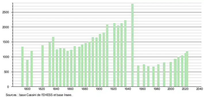 1 183 hab. (2022 en évolution de +10,56 % par rapport à 2016)