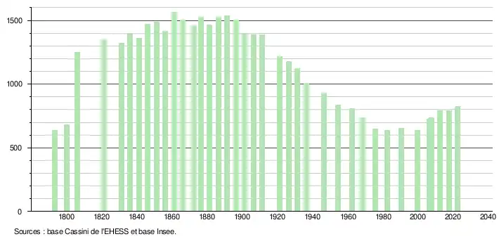 - ↑ Fiches Insee - Populations de référence de la commune pour les années 2006, 2007, 2008, 2009, 2010, 2011, 2012, 2013, 2014, 2015, 2016, 2017, 2018, 2019, 2020, 2021 et 2022.