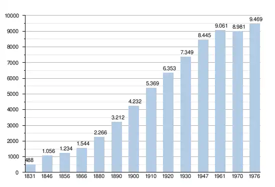 - Sources:INS, Rem:1831 jusqu'en 1970=recensements, 1976= nombre d'habitants au 31 décembre