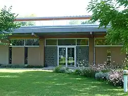 La médiathèque Jean-Cocteau est située entre la mairie et l'église.