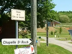 La chapelle Saint-Roch (ou Notre-Dame-de-la-Lande[44]) est située sur l'ancien chemin des Anglais, qui était au Moyen Âge un des itinéraires secondaires est-ouest fréquentés par les pèlerins qui allaient au sanctuaire de Saint-Jacques-de-Compostelle et aux reliques de saint Eutrope à Saintes[45].