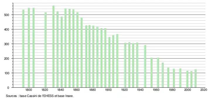 - ↑ Fiches Insee - Populations légales de la commune pour les années 20062007 2008 2009 2010 20112012201320142015 2016 .
