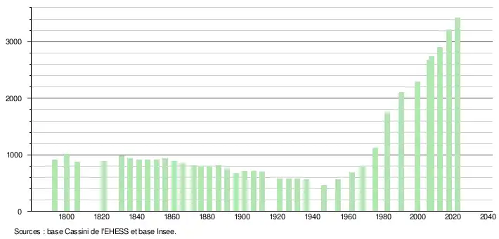 - ↑ Fiches Insee - Populations de référence de la commune pour les années 2006, 2007, 2008, 2009, 2010, 2011, 2012, 2013, 2014, 2015, 2016, 2017, 2018, 2019, 2020, 2021 et 2022.