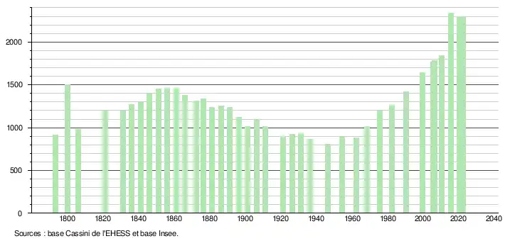 - ↑ Fiches Insee - Populations de référence de la commune pour les années 2006, 2007, 2008, 2009, 2010, 2011, 2012, 2013, 2014, 2015, 2016, 2017, 2018, 2019, 2020, 2021 et 2022.