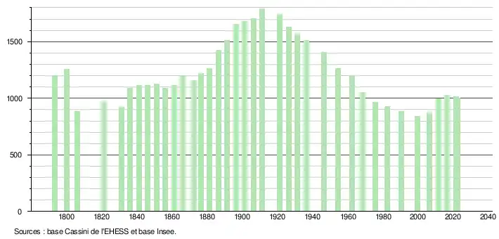 - ↑ Fiches Insee - Populations de référence de la commune pour les années 2006, 2007, 2008, 2009, 2010, 2011, 2012, 2013, 2014, 2015, 2016, 2017, 2018, 2019, 2020, 2021 et 2022.