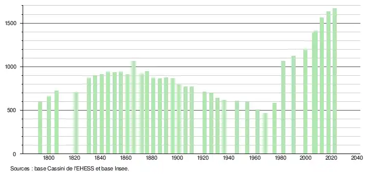 - ↑ Fiches Insee - Populations de référence de la commune pour les années 2006, 2007, 2008, 2009, 2010, 2011, 2012, 2013, 2014, 2015, 2016, 2017, 2018, 2019, 2020, 2021 et 2022.