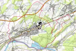 L'occupation des sols de la commune, telle qu'elle ressort de la base de données européenne d’occupation biophysique des sols Corine Land Cover (CLC), est marquée par l'importance des territoires agricoles (43,8 % en 2018), en diminution par rapport à 1990 (48,3 %). La répartition détaillée en 2018 est la suivante : forêts (29,2 %), terres arables (17,8 %), zones urbanisées (15,9 %), zones agricoles hétérogènes (15,5 %), prairies (10,5 %), eaux continentales[Note 3] (5,6 %), zones industrielles ou commerciales et réseaux de communication (5,5 %)[13]. L'évolution de l’occupation des sols de la commune et de ses infrastructures peut être observée sur les différentes représentations cartographiques du territoire : la carte de Cassini (XVIIIe siècle), la carte d'état-major (1820-1866) et les cartes ou photos aériennes de l'IGN pour la période actuelle (1950 à aujourd'hui)[Carte 1].