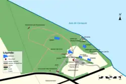Après le portail donnant sur le boulevard Saint-Pierre, une allée bordée d'arbres conduit vers la chapelle, au nord. Du côté ouest de l'allée se trouvent un puits et une pompe à eau manuelle. Le cimetière se trouve à l'est, en face de la chapelle. Entre les deux, un chemin mène à l'escalier de la source miraculeuse. Dans le bocage à l'arrière de la chapelle se trouve un chemin de croix qui mènent au monument dédié à Notre-Dame de l'Assomption.