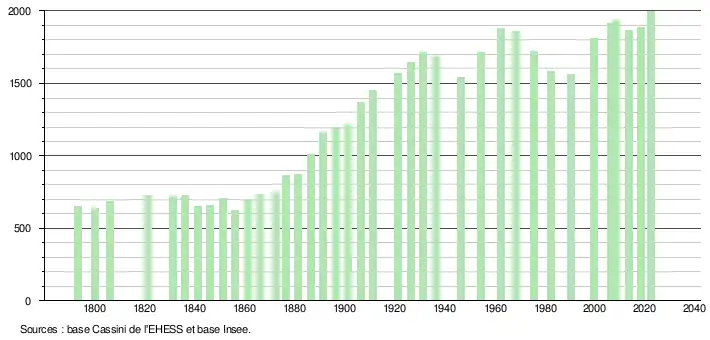 - ↑ Fiches Insee - Populations de référence de la commune pour les années 2006, 2007, 2008, 2009, 2010, 2011, 2012, 2013, 2014, 2015, 2016, 2017, 2018, 2019, 2020, 2021 et 2022.
