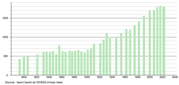 - ↑ Fiches Insee - Populations de référence de la commune pour les années 2006, 2007, 2008, 2009, 2010, 2011, 2012, 2013, 2014, 2015, 2016, 2017, 2018, 2019, 2020, 2021 et 2022.