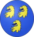 Blason | Coupé : au premier de sinople à la bande d'or, au second d'argent au renard d'azur[34]. |