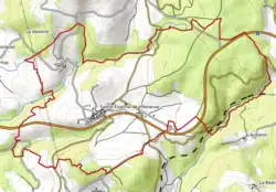L'occupation des sols de la commune, telle qu'elle ressort de la base de données européenne d’occupation biophysique des sols Corine Land Cover (CLC), est marquée par l'importance des territoires agricoles (53 % en 2018), en augmentation par rapport à 1990 (51,7 %). La répartition détaillée en 2018 est la suivante : forêts (47 %), zones agricoles hétérogènes (31,4 %), prairies (21,6 %)[14]. L'évolution de l’occupation des sols de la commune et de ses infrastructures peut être observée sur les différentes représentations cartographiques du territoire : la carte de Cassini (XVIIIe siècle), la carte d'état-major (1820-1866) et les cartes ou photos aériennes de l'IGN pour la période actuelle (1950 à aujourd'hui)[Carte 1].