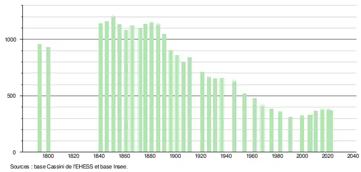 - ↑ Fiches Insee - Populations de référence de la commune pour les années 2006, 2007, 2008, 2009, 2010, 2011, 2012, 2013, 2014, 2015, 2016, 2017, 2018, 2019, 2020, 2021 et 2022.