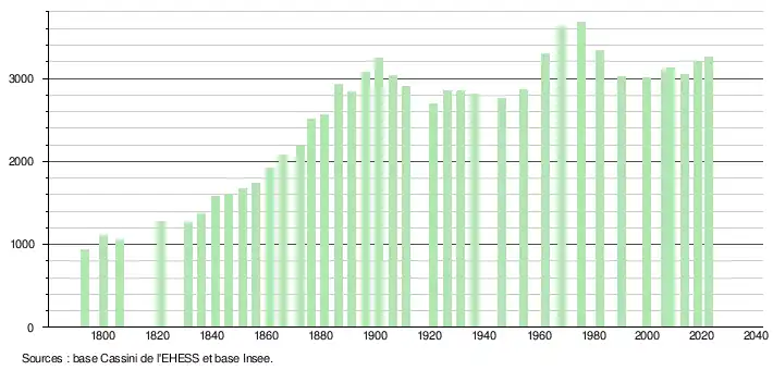 - ↑ Population municipale de référence en vigueur au 1er janvier 2025, millésimée 2022, définie dans les limites territoriales en vigueur au 1er janvier 2024, date de référence statistique : 1er janvier 2022.
