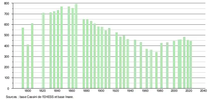 - ↑ Population municipale de référence en vigueur au 1er janvier 2025, millésimée 2022, définie dans les limites territoriales en vigueur au 1er janvier 2024, date de référence statistique : 1er janvier 2022.