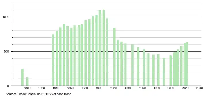 634 hab. (2022 en évolution de +7,28 % par rapport à 2016)