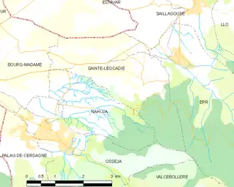 Les communes les plus proches[Note 1] sont[3] : Nahuja (1,5 km), Err (2,5 km), Osséja (2,9 km), Estavar (3,8 km), Palau-de-Cerdagne (3,8 km), Saillagouse (4,0 km), Bourg-Madame (4,9 km), Llo (5,4 km).