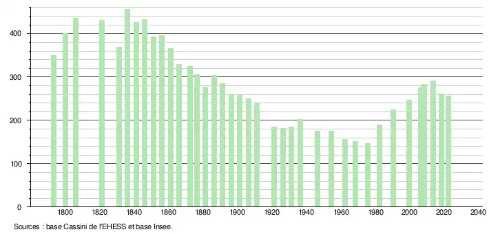- 1 2 Population municipale de référence en vigueur au 1er janvier 2025, millésimée 2022, définie dans les limites territoriales en vigueur au 1er janvier 2024, date de référence statistique : 1er janvier 2022.