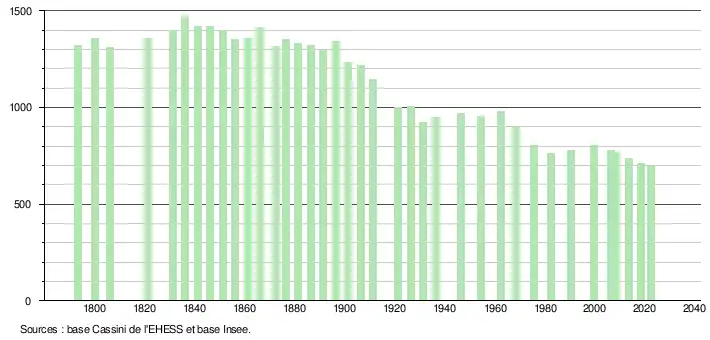 - ↑ Fiches Insee - Populations de référence de la commune pour les années 2006, 2007, 2008, 2009, 2010, 2011, 2012, 2013, 2014, 2015, 2016, 2017, 2018, 2019, 2020, 2021 et 2022.
