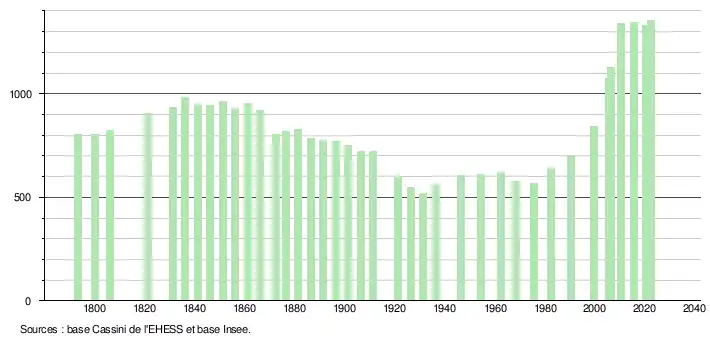 - ↑ Fiches Insee - Populations de référence de la commune pour les années 2006, 2007, 2008, 2009, 2010, 2011, 2012, 2013, 2014, 2015, 2016, 2017, 2018, 2019, 2020, 2021 et 2022.