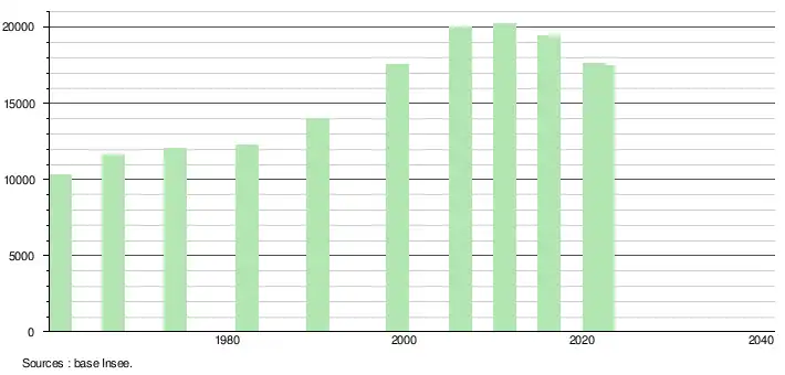 L'évolution du nombre d'habitants est connue à travers les recensements de la population effectués dans la commune depuis 1961, premier recensement postérieur à la départementalisation de 1946. À partir de 2006, les populations de référence des communes sont publiées annuellement par l'Insee. Le recensement repose désormais sur une collecte d'information annuelle, concernant successivement tous les territoires communaux au cours d'une période de cinq ans. Pour les communes de plus de 10 000 habitants les recensements ont lieu chaque année à la suite d'une enquête par sondage auprès d'un échantillon d'adresses représentant 8 % de leurs logements, contrairement aux autres communes qui ont un recensement réel tous les cinq ans[21],[Note 3].