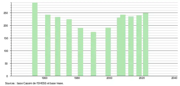 - ↑ Population municipale de référence en vigueur au 1er janvier 2025, millésimée 2022, définie dans les limites territoriales en vigueur au 1er janvier 2024, date de référence statistique : 1er janvier 2022.
