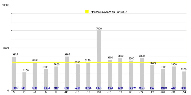 - Affluence moyenne à domicile du FC Nantes en championnat : 3 302 (soit -15,33% par rapport à l'année précédente).
